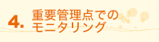 重要管理点での管理基準を守っているかどうか適切な方法で監視します。 連続監視が望ましいのですが、断続的な監視の場合にはその間隔が十分管理基準内で、危害を生じないあるいは入り込まない条件で確実に監視できることが必要です。 |